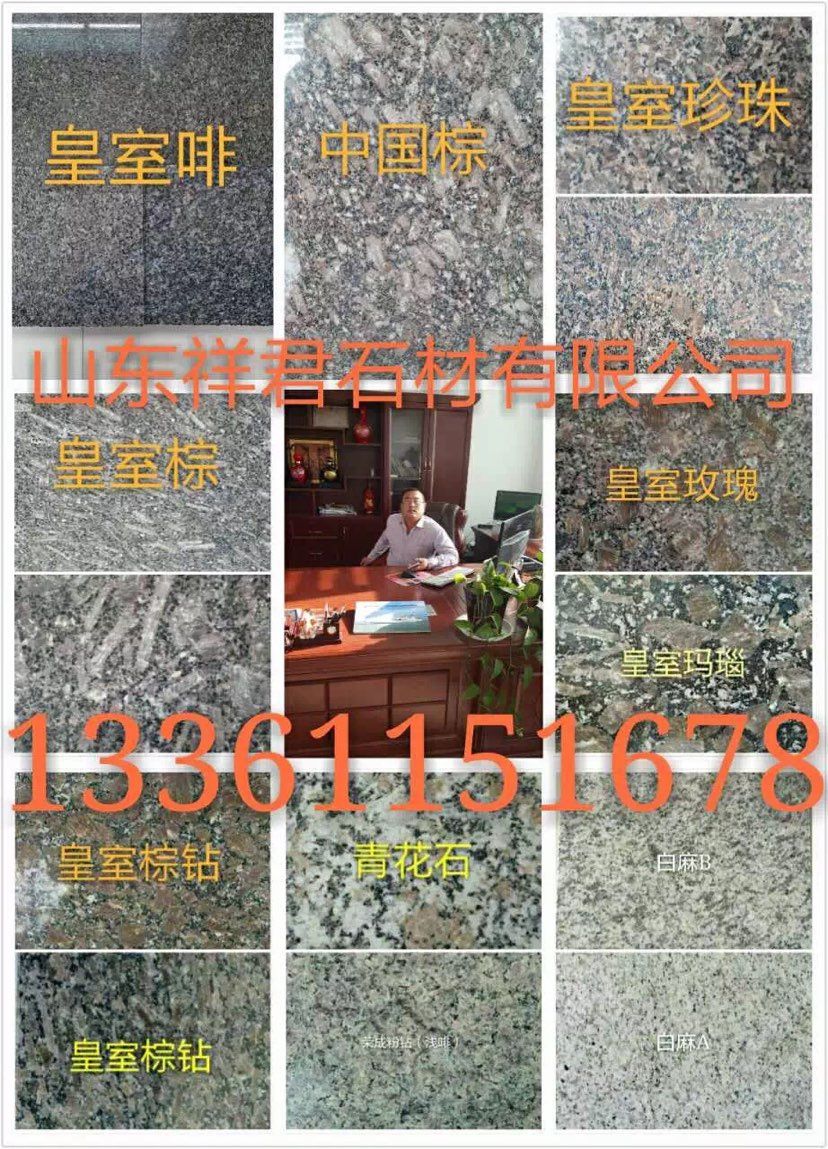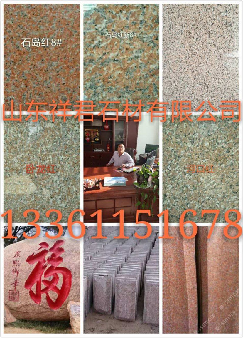 山東榮成市祥君石材有限公司廠價(jià)直銷!石島紅!!櫻花紅??!榮成灰??!皇室冰花?。』适椰旇??。? 紫晶鉆!!皇室珍珠!!皇室玫瑰!!皇室啡!!皇室棕鉆!!中磊紅!!龍須紅!!白麻!!黃金麻??!中國(guó)棕!!文登灰!等山東石材及異型加工。全自動(dòng)磨光,大型噴砂機(jī).紅外線切割。