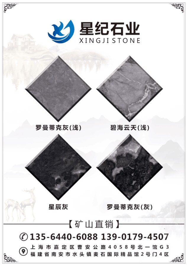 星紀(jì)石業(yè)專(zhuān)業(yè):龍馬礦星耀灰礦山直銷(xiāo),底色一致,紋理清晰,適合各種工裝及家裝,常年備貨荒料5000噸,大板10萬(wàn)方量大價(jià)優(yōu)。
