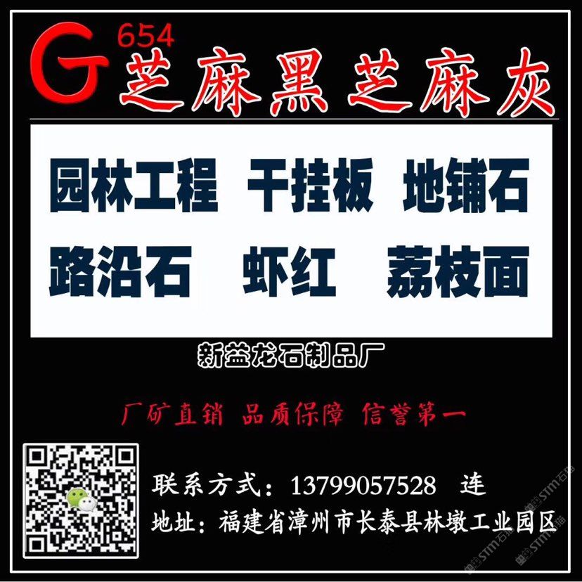 兼營:芝麻灰g655、芝麻白g623、灰麻g688、黃銹石g682等花崗巖品種板材及各種異形;加工方式多樣化:磨光板、毛板、厚板 、薄板、規(guī)格板、火燒板、地鋪石、小方塊、自然板、拉絲板、洗衣板、染板、菠蘿面、機(jī)切板、大板 、荔枝面、路沿石、臺面板、拋光板、線條、盲人石、滾石及各種建筑工程配套用石的生產(chǎn)、加工和銷 售。產(chǎn)品不僅暢銷國內(nèi)各大城市,還遠(yuǎn)銷到美國,加拿大,英國,韓國,香港,臺灣等國家和地區(qū)。