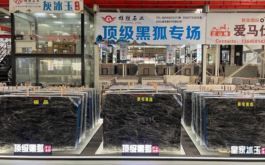 中國福建泉州水頭鎮(zhèn)新龍國際高奢石材城大門進去100米雄勝石業(yè)