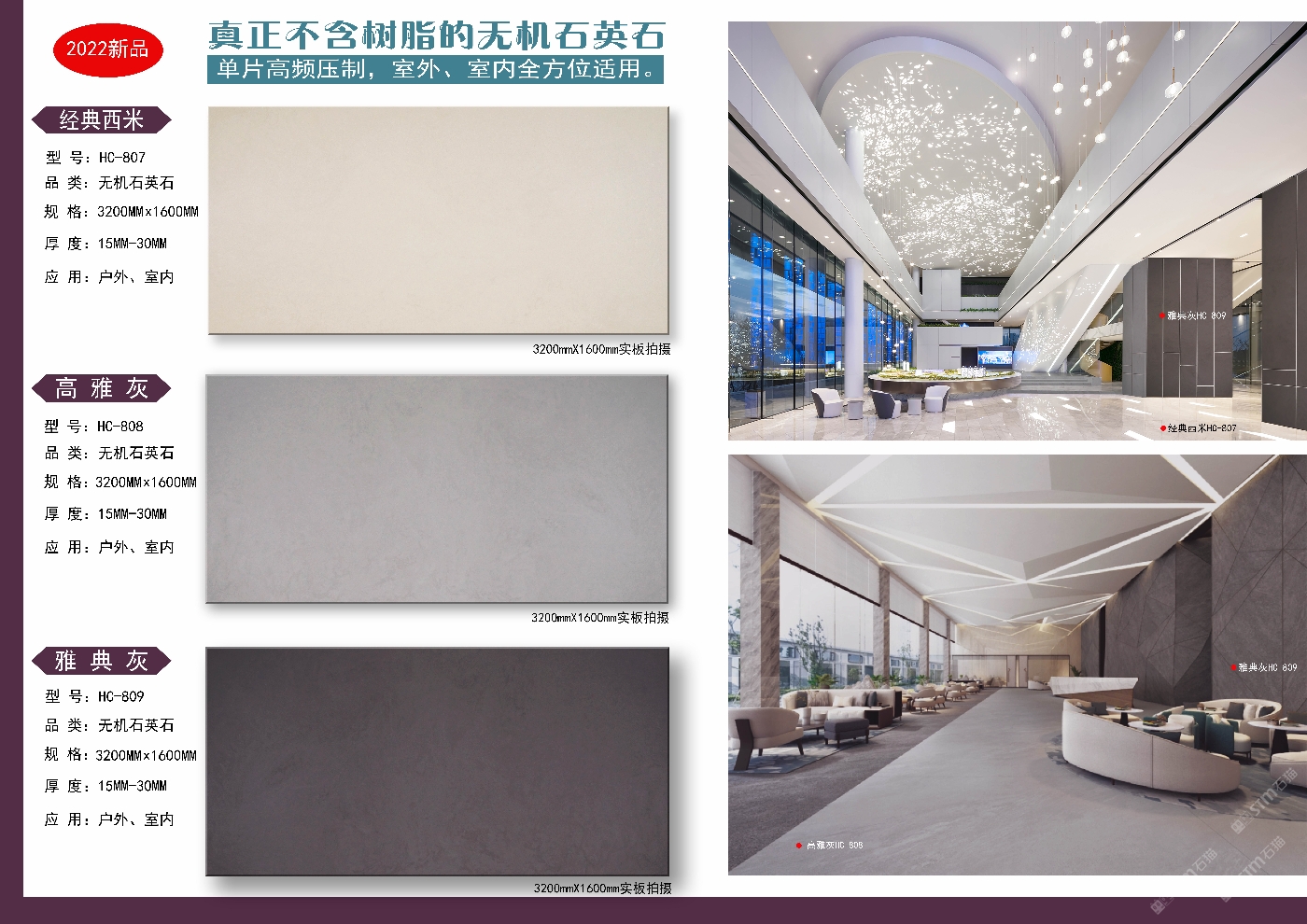 專業(yè)研發(fā)生產(chǎn)銷售:無機(jī)石英石裝飾板材產(chǎn)品性能具有高硬度、耐磨損、耐高溫、耐侯性好、高抗折強(qiáng)度、低吸水率、抗污易潔、健康無輻射、不含樹脂、可燒火燒面、可應(yīng)用到室內(nèi)外等優(yōu)秀特點(diǎn)。歡迎各位了解洽談合作,電話微信同步:18507665889梁