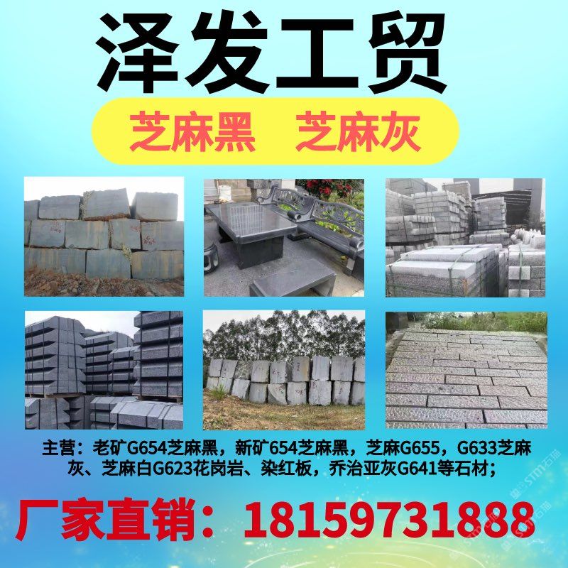 本廠主營(yíng),老礦654芝麻黑,655芝麻灰,專業(yè)生產(chǎn),加工國(guó)內(nèi)花崗巖材廠,建筑材料用石,光面,燒面,荔枝面,小方塊,路巖石,墓碑石,等……各種各樣,價(jià)格優(yōu)惠,歡迎廣大朋友來(lái)函洽談業(yè)務(wù)……\ \ 聯(lián)系電話 18159731888\ \ 地址 福建省漳州市長(zhǎng)泰縣巖溪開發(fā)區(qū)