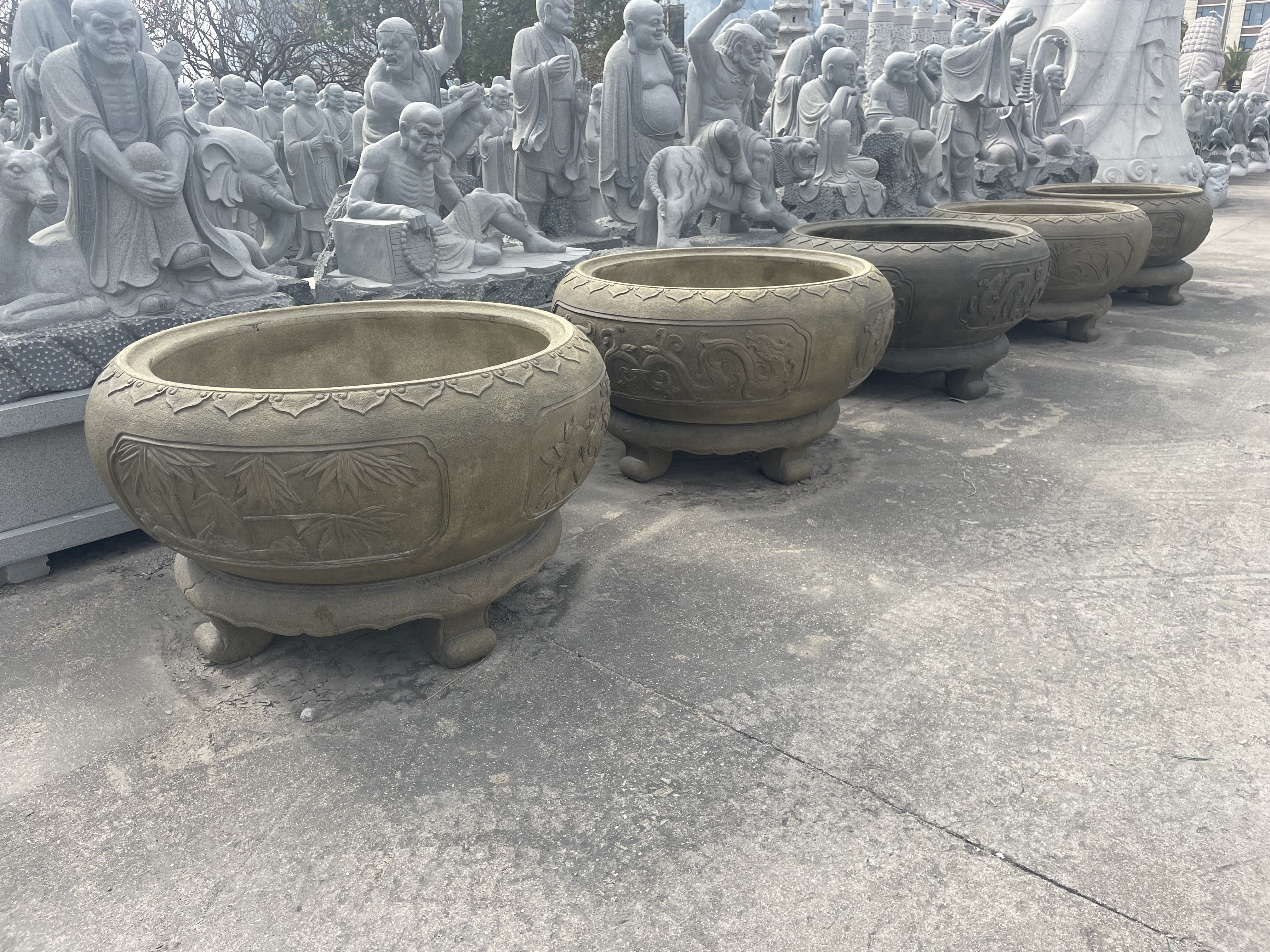 ? ? ? 生產加工產品主要包括大型雕塑、古今名人雕塑、園林配套雕塑、寺廟雕刻、動物雕塑、奇石(鐘乳石)、宗教大佛雕塑、龍柱、文化柱、石塔、經塔、漏窗、山門牌樓、噴泉、庭院燈籠等上千個石雕品種。石雕技藝纖巧、精細,具有賞心悅目的藝術效果。近年來公司致力于城市景觀工程配套服務,為市政廣場、城市綠化廣場、公園、住宅小區(qū)等場所提供大量具有相當藝術含量的雕塑作品,設計、生產、安裝一站式服務。