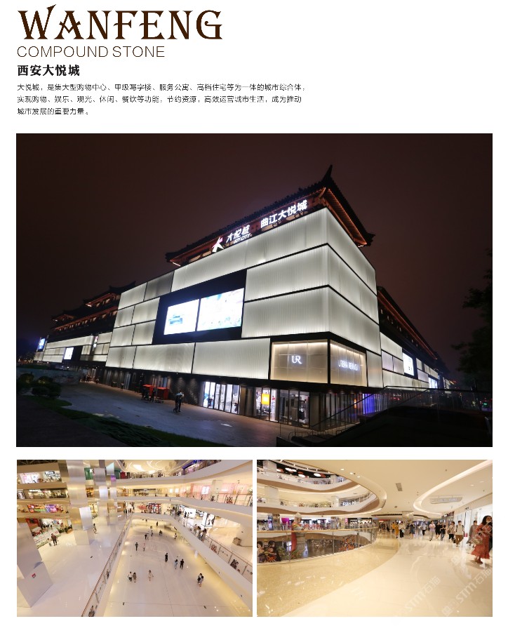 萬峰石材:崗石/水磨石/石英石/工程板定制 廣東佛山市營銷總部 閆經(jīng)理--電話:18688226787~18639505199 萬峰石材科技有限公司創(chuàng)建于1997年,是一家集人造石及其異型材的研發(fā)、生產(chǎn)、銷售、現(xiàn)場施工和后期養(yǎng)護(hù)服務(wù)于一體的國家高新技術(shù)企業(yè)、中國石材協(xié)會 副會長單位。公司成立之初就確立了“打造全球人造石材行業(yè)領(lǐng)袖品牌”的企業(yè)目標(biāo)和以“創(chuàng)新進(jìn)取、追求”為核心精神的企業(yè)文化,通過逐步建立、完善以產(chǎn)品自主研發(fā)為企業(yè)核心競爭力的進(jìn)取型創(chuàng)新戰(zhàn)略體系,現(xiàn)已發(fā)展成為世界人造石材行業(yè)科技研發(fā)的風(fēng)向標(biāo)以及行業(yè)領(lǐng)軍企業(yè)。 公司目前已成功研發(fā)出6代人造石產(chǎn)品,擁有板材系列100余款,異型產(chǎn)品80余款,同時(shí)還研發(fā)多種生產(chǎn)型原料和護(hù)理型材料。擁有強(qiáng)大的科研、設(shè)計(jì)及管理的人才團(tuán)隊(duì),成功開發(fā)出了“數(shù)控布料”、“表面納米改性防護(hù)”“多彩巖相仿真”、“線(裂)紋仿真”、“玉石仿真”、“微石仿真”等國際的生產(chǎn)工藝技術(shù),產(chǎn)品不僅兼?zhèn)涮烊皇牡馁|(zhì)感和堅(jiān)固的質(zhì)地,同時(shí)還擁有良好的易加工特性,在提升人造石材光澤度方面,成功引 進(jìn)超潔亮技術(shù),突破了人造石材光澤度比天然石材低的局面,同時(shí)大幅度提升了產(chǎn)品的耐磨度和防污性能。產(chǎn)品廣泛應(yīng)用于公共建筑、家庭裝修、廚衛(wèi)、 飾品等領(lǐng)域??筛鶕?jù)不同裝飾風(fēng)格需要,打造出個(gè)性 的家居空間。 營銷中心:廣東佛山南莊鎮(zhèn)中原商貿(mào)大樓 銷售經(jīng)理:閆先生18639505199~186882267 網(wǎng)址:www.wf-stone.com 萬峰石材水磨石/大理石/崗石/石英石/人造玉石