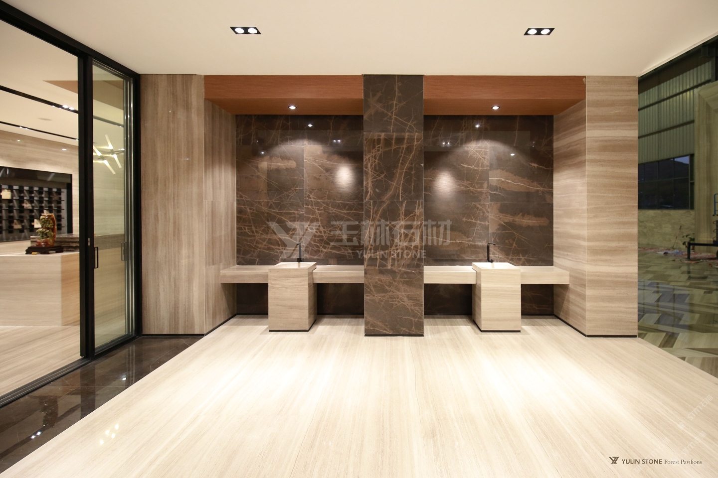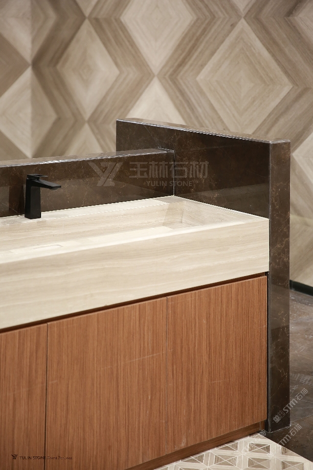 發(fā)布信息: 歐式廳。造仿歐洲高大尚,有著古典氣息,墻面采用白木紋,背景是灰石系類,經(jīng)過精心的設(shè)計(jì)加工,拼成一副高山遠(yuǎn)景圖;地面用白木紋和灰木紋系類石材,交叉紋理鋪裝,展現(xiàn)出一灰一自的高檔次效果。衛(wèi)生間外墻,墻體是靜雅棕,側(cè)面是木紋石工程板切割剩余邊角石材進(jìn)行二層加工再次利用,制成墻上馬賽克和文化石,粘接而成,可做自然面和2D、3D等不同款式。洗手盆是整塊白木紋石材雕刻,打磨光滑安裝而成。