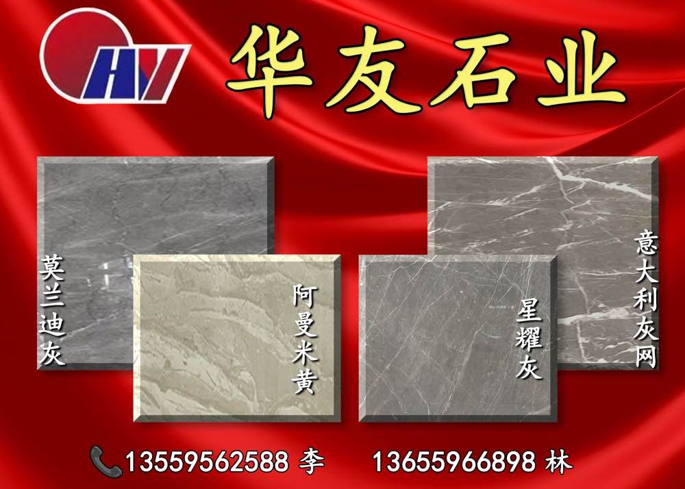 華友石業(yè)有限公司 聯(lián)系人:林月友    136****6898 查看 135****2588 查看 主營(yíng)范圍: 大板批發(fā)、 企業(yè)地址:福建泉州南安市水頭鎮(zhèn)立方市場(chǎng)3號(hào)門5區(qū)