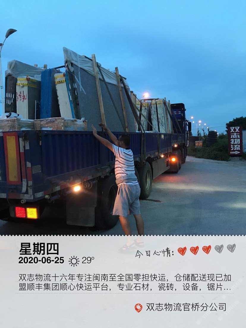 發(fā)布信息: 水頭雙志物流十六年專注閩南至全國零擔(dān)快運,現(xiàn)已加盟順豐集團(tuán)順心快運平臺,專業(yè)石材、瓷磚、設(shè)備、鋸片等零擔(dān)貨物運輸。本物流專線福建到全國各地線路零擔(dān)整車 運輸業(yè)務(wù),[0 -10]噸零擔(dān)隨時上門提貨,天天發(fā)車,價格合理!專注全國石材瓷磚配件零擔(dān)直達(dá)快運及閩南地區(qū)同城零擔(dān)配送一日達(dá),順豐集團(tuán)順心平臺各種零擔(dān)貨物10公斤起收,電商平臺入倉,大件送貨上樓,全國無盲區(qū),十六年專業(yè)值得您的托付!公司秉承客戶至上,服務(wù)的理念! 歡迎各位新老朋友來電洽談! 手機(jī)微信同號:13505987769/15905908260李(女士)