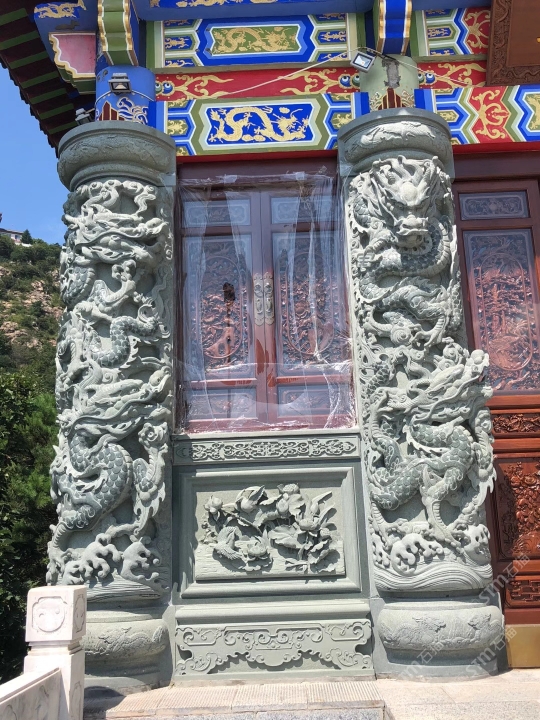 寺廟古建青石雕刻龍柱堵石