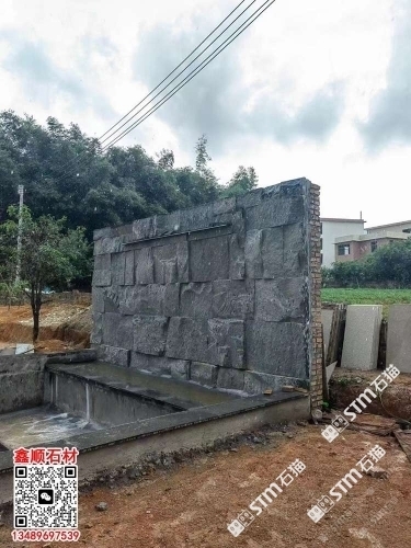 首頁(yè) > 案例 > 芝麻黑自然面背景墻流水石水景石材流水幕墻石皮背景墻