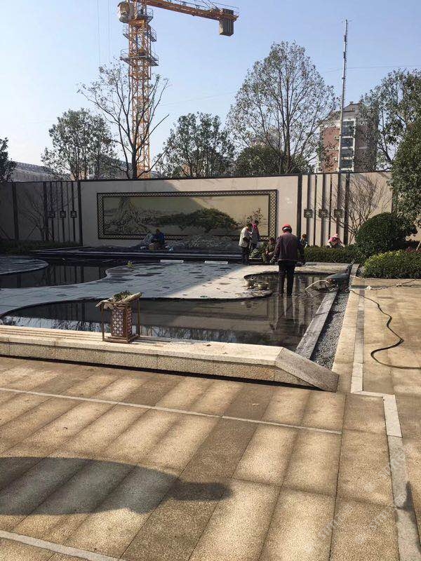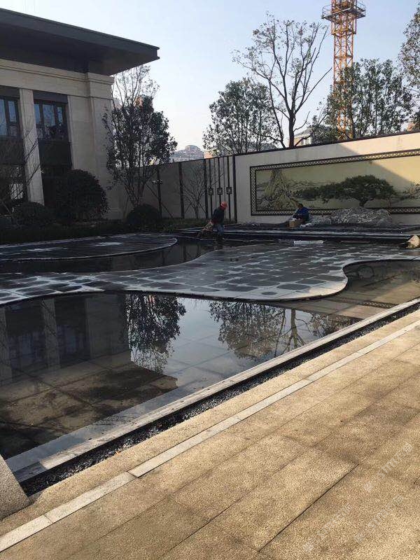 用細點黑金沙打造的地鋪和水景,
