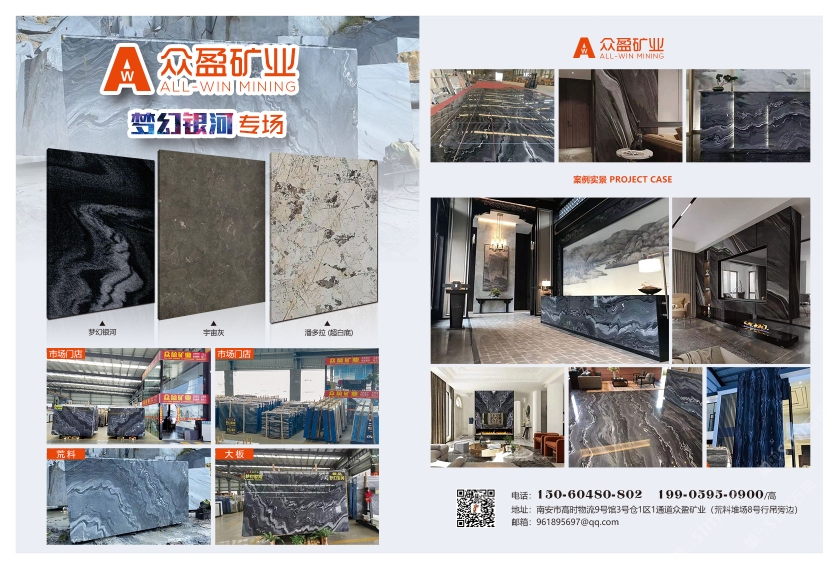 眾盈礦業(yè) 聯(lián)系人:高少    150****0802 查看 150****0802 查看 主營范圍: 大板批發(fā)、礦山、大理石加工、荒料、石材外貿(mào)、 企業(yè)地址:福建泉州高時(shí)國際石材交易中心9號館1號門1通道3號倉1區(qū)眾盈礦業(yè) (靠近荒料堆場8號行吊旁邊)