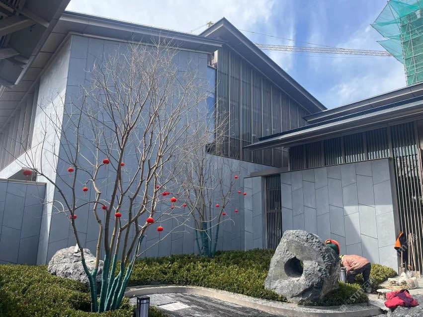無機灰洞石,啟東城投大雅風華售樓處外墻應用案例