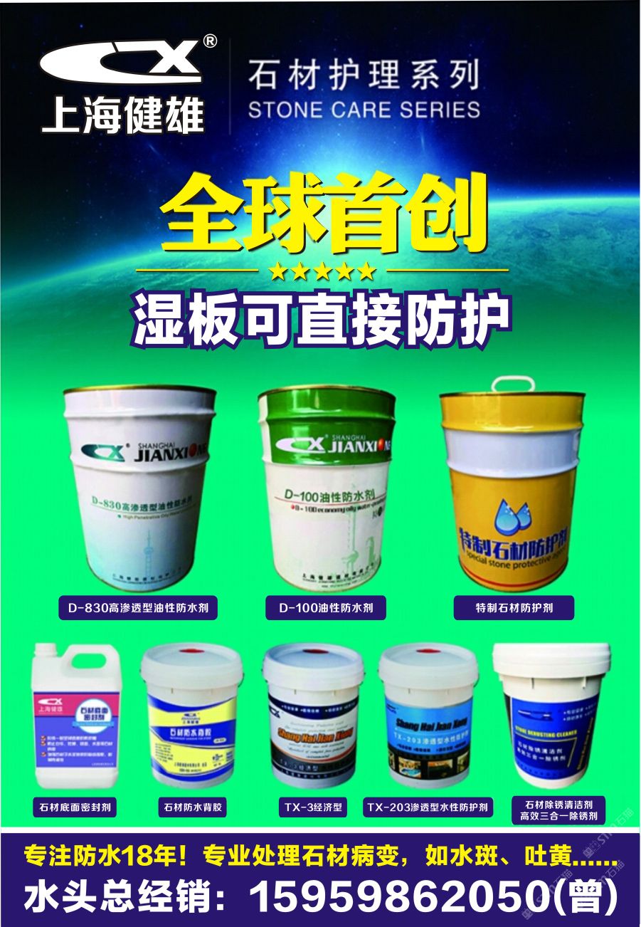 上海健雄石材護理 聯(lián)系人:曾小姐    159****2050 查看 159****2050 查看 主營范圍: 石材輔料及特殊工藝、 企業(yè)地址:福建泉州水頭鎮(zhèn)解放路