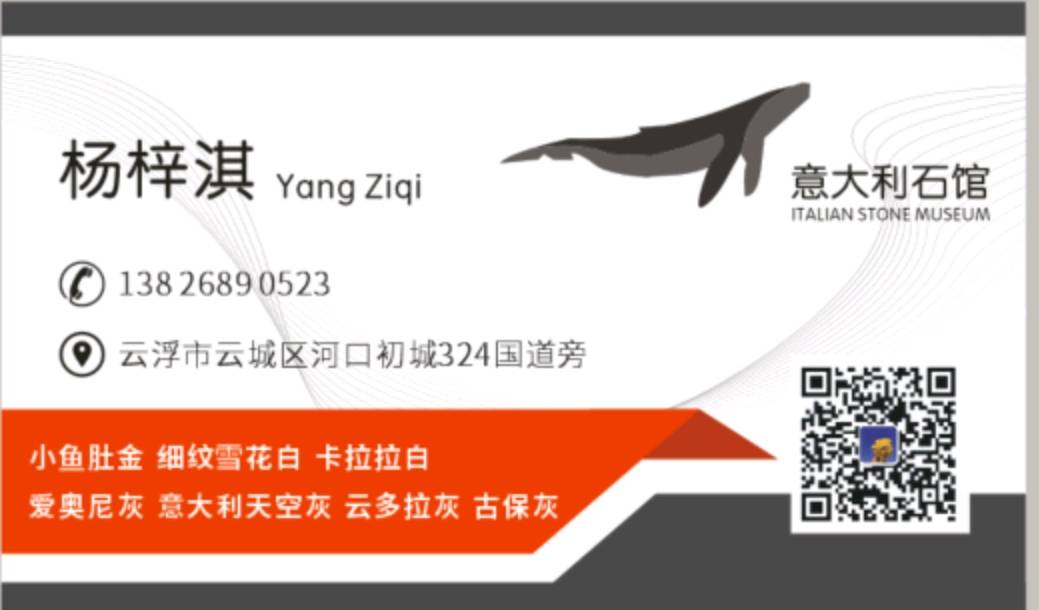 云浮市意大利石館 聯(lián)系人:楊小姐    138****0523 查看 手機(jī)號(hào)碼:無 主營(yíng)范圍: 大板批發(fā)、荒料、 企業(yè)地址:廣東云浮廣東省云浮市云城區(qū)河口高速路往市區(qū)方向50米