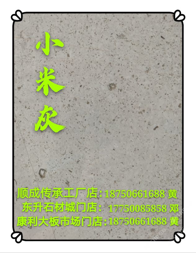 發(fā)布信息: (灰姑娘)天發(fā)工廠店:15278000702 伍 (小米灰)順成工廠店:18750661688 黃 (小米灰)東升石材城門店:17750085858鄧 (雅士灰,銀白龍)康利門店:18750661688 黃 廣信石材主營(yíng):灰姑娘,地中?;?,小米灰,雅士灰,銀白龍,南極灰,布魯斯灰,凱撒灰,賓利灰,美尼斯灰,新古堡灰等各類灰色天然大理石系列專場(chǎng)。#15278000702,灰姑娘,雅士灰,小米灰#