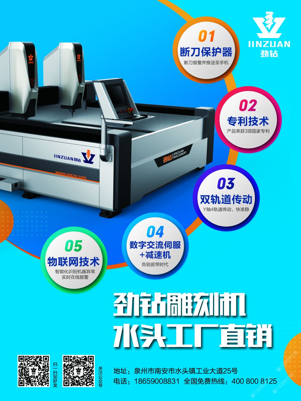 發(fā)布信息: 勁鉆智能雕刻機(jī)工廠,坐落于福建南安市水頭鎮(zhèn)工業(yè)大道25號(hào)(海聯(lián)工業(yè)區(qū)),系一家集研發(fā)、生產(chǎn)、銷售、服務(wù)一體的智能雕刻機(jī)生產(chǎn)廠家,產(chǎn)品遠(yuǎn)銷國(guó)內(nèi)外市場(chǎng),現(xiàn)誠(chéng)招全國(guó)區(qū)域代理商,招商電話:18659008831