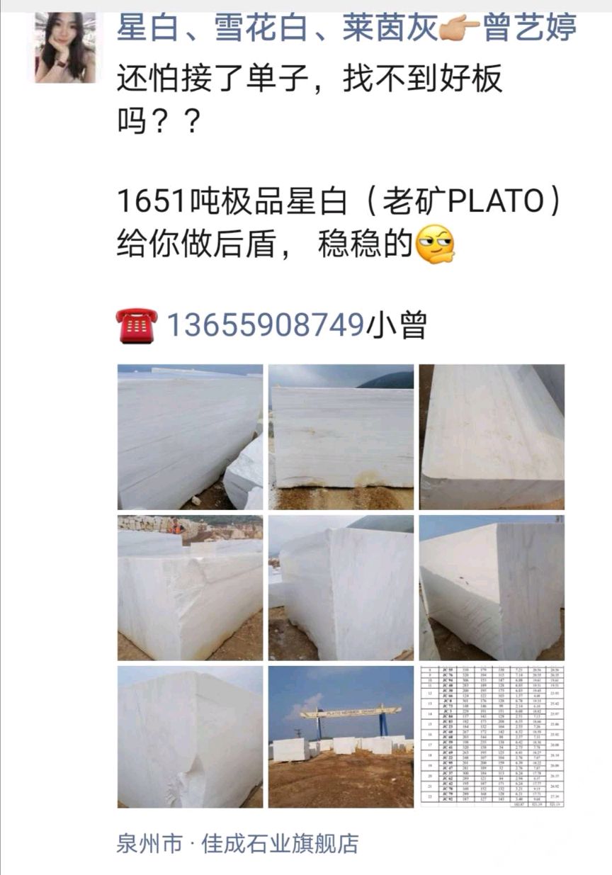 發(fā)布信息: 【大量 星白】 老礦PLATO星白1651噸整裝待發(fā)! 荒料可賣?。?! 聯(lián)系電話:13860761011呂