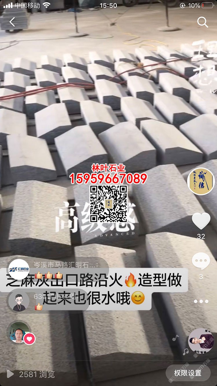 發(fā)布信息: 林葉石業(yè)長泰工廠(林總15959667089微信同號(hào))專業(yè)老礦芝麻黑與芝麻灰供應(yīng)商,專注于出口及高品質(zhì)工程國內(nèi)外園林景觀石材;主營:老礦芝麻黑墓碑石、正礦吳田山G654窗臺(tái)板、G654芝麻黑牛鼻子、芝麻黑石材游泳池蓋板、老礦芝麻黑出口高品質(zhì)工程板、老礦654小方塊馬蹄石、芝麻灰G655路沿石、深灰麻石材、中灰麻石材、深灰色花崗巖、黑色麻石等光面、燒面、荔枝面、墓碑石材、地鋪石材、園林景觀工程、路沿石材等;林葉石業(yè)寧德工廠(葉總18050650127微信同號(hào))專業(yè)新礦芝麻黑寧德小藍(lán)寶,廠礦一體,體格優(yōu)惠,真誠希望您的光臨與合作?。暶魃蟼鳟a(chǎn)品圖片均是本廠加工生產(chǎn))