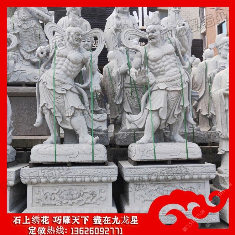 發(fā)布信息: 寺廟門神哼哈二將石刻像 哼哈二將石雕價格——九龍星石業(yè)。 寺廟門神哼哈二將石刻像為明代小說《封神演義》作者根據(jù)佛教守護寺廟的兩位門神,附會而成的兩員神將。形象威武兇猛,一名鄭倫,能鼻哼白氣制敵;一名陳奇,能口哈黃氣擒將佛教中守護廟門的兩個神,形象威武兇惡,《封神演義》中把它們描寫成兩個有法術的督糧官。一個鼻子里哼出白氣,一個口中哈出黃氣。用來比喻有權勢者手下得力而盛氣凌人的人(如果碰巧是兩個),也比喻狼狽為奸的兩個人。 哼哈二將石雕原名鄭倫,原是商紂王的大將,他拜度厄真人為師。由于鄭倫虔誠拜師,認真學法,因此深得度厄真人的鐘愛,于是度厄真人很快授他一種法術,這就是“竅中二氣”。他在“警衛(wèi)”中如遇盜賊,只要鼻子一哼,就會響如洪鐘,并隨響聲噴出二道白光,可吸敵人魂魄,所以,任何敵人在他面前都會失敗。 哼哈二將石雕名叫陳奇,他腹內有一道黃氣,如果遇到敵人,只要張口哈出一口黃氣,同樣可以吸敵人的魂魄,使敵人呆若木雞,舉手就擒,置敵人于死地。
