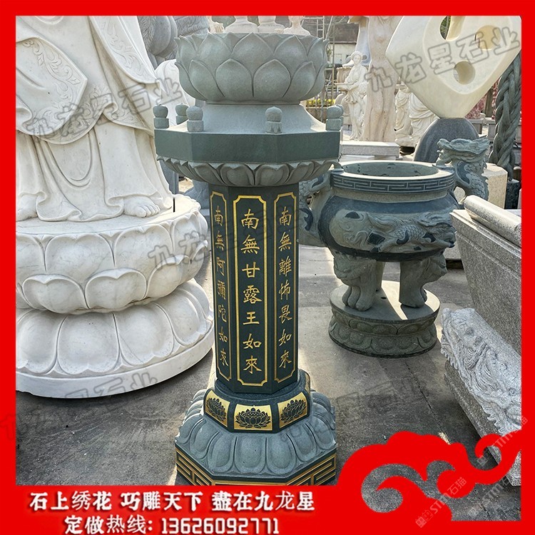 發(fā)布信息: 佛教施食臺價格 石材出食臺圖片樣式——九龍星石業(yè)。 佛教施食臺的構(gòu)造是一種兼具石柱、石塔風(fēng)格的食臺,一般的石雕出食臺的柱體為多 邊形、上書多尊佛名。常見的有四尊佛名、七尊佛名。分別是:多寶如來,妙色身如 來,廣博身如來,離怖畏如來,甘露王如來,阿彌陀如來。當(dāng)然也有部分出食臺會雕 刻佛教典故。石雕出食臺除了作為布施之用還能夠裝點庭院,提升庭院的佛法氣息, 弘揚佛法精神。 制作石雕出食臺的材質(zhì)有各類花崗巖、大理石、砂巖等。其中以花崗巖的采用量 ,大理石和砂巖則相對少些。大理石一般表面會帶有很多不規(guī)則的花紋,少數(shù)漢白玉 石除外。砂巖在惠安雕刻早期時間會偶爾采用一些,而后由于粉塵太大,對人的身體 損害較大,因而現(xiàn)在很少會有砂巖雕刻品。所有,若以使用的材質(zhì)種類來區(qū)分出食臺 種類的話有花崗巖施食臺、大理石施食臺、砂巖施食臺等。