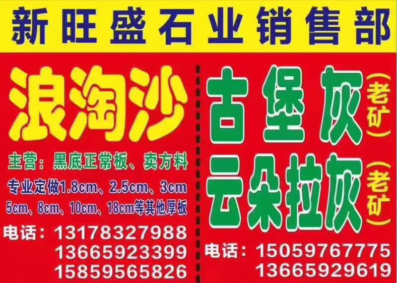 新旺盛石業(yè) 聯系人:曾(花崗巖)    131****7988 查看 手機號碼:無 主營范圍: 大板批發(fā)、 企業(yè)地址:福建泉州南安市G1502(壽溪特大橋)東升石材城4通道D12-2