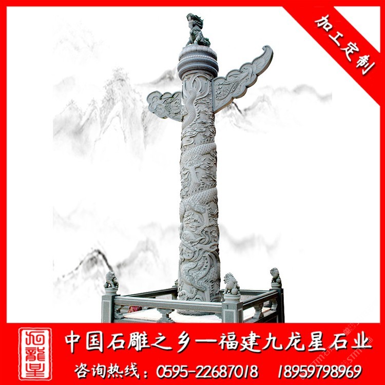 發(fā)布信息: 九龍星石業(yè)常年批發(fā)石雕柱子,石雕華表柱、石雕中華柱、石雕龍柱、石雕文化柱、石雕圓柱、石雕方柱等等,廠家直接供應(yīng),工期快,咨詢電話18959798969 華表石雕又稱中華柱石雕一種中國古代傳統(tǒng)建筑形式,屬于du古代宮殿、陵zhi墓等大型建筑物前面做裝飾用的巨大石柱,相傳華表是部落時代的一種圖騰標志,古稱桓表,以一種望柱的形式出現(xiàn),富有深厚的中國傳統(tǒng)文化內(nèi)涵,散發(fā)出中國傳統(tǒng)文化的精神、氣質(zhì)。