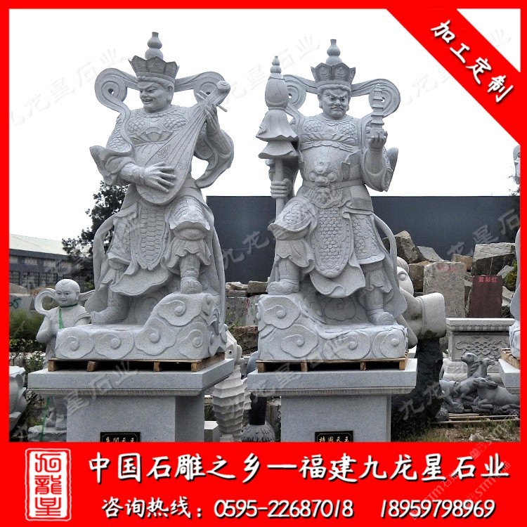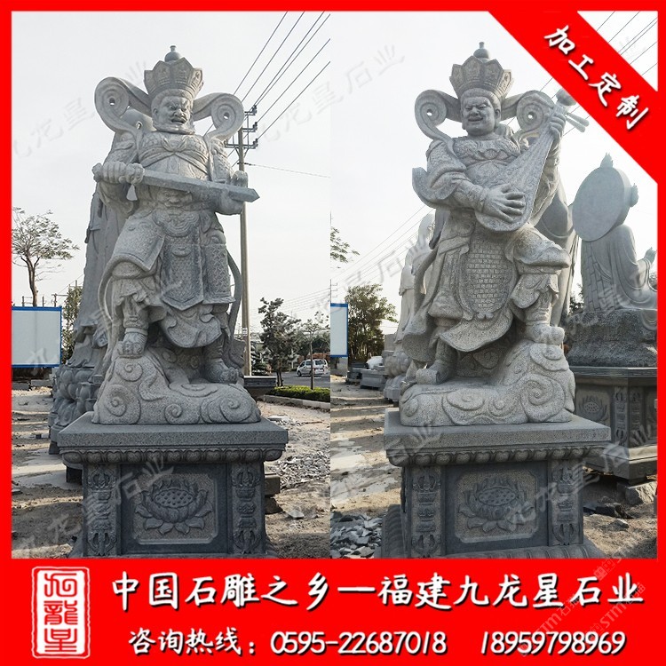 發(fā)布信息: 九龍星石業(yè)從事石雕行業(yè)二十多年,常年批發(fā)石雕佛像,石雕四大天王站像、坐像四大天王門神、石雕觀音、石雕十八羅漢、石雕媽祖等。才是可以為青石、漢白玉、芝麻白、芝麻黑。咨詢電話:18959798969 常見的造型只有站像和坐像兩種,一般是單面造型。青石四大天王石雕像分別為護(hù)持東方國(guó)土東勝神洲的持國(guó)天王,護(hù)持南方國(guó)土南瞻部洲的增長(zhǎng)天王,護(hù)持西方國(guó)土西牛賀洲的廣目天王,護(hù)持北方國(guó)土北俱蘆洲的多聞天王。由于四大天王在佛教諸佛菩薩中承擔(dān)著護(hù)持佛法、降妖伏魔的職責(zé),因而其示現(xiàn)的造型通常身穿鎧甲,手持法器,各不相同。