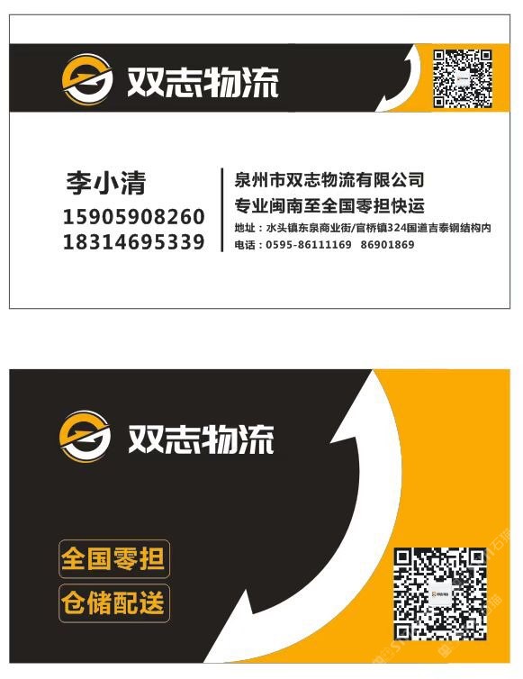 發(fā)布信息: 【雙志物流】十七年專業(yè)福建閩南至全國零擔(dān)往返快運(yùn)倉儲配送等貨物運(yùn)輸!大泉州地區(qū)同城一日達(dá)物流運(yùn)輸,水頭、官橋、晉江三個倉儲中心打造大泉州同城智慧物流。歡迎廣大客戶監(jiān)督指導(dǎo)合作共享! 零擔(dān)天天發(fā)車,隨時可提貨! 歡迎新老朋友來電咨詢?? 手機(jī)微信同號? 零擔(dān)熱線:18314695339 整車熱線:15905908260