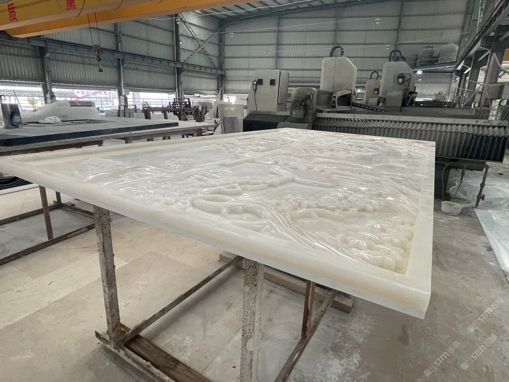 我們提供3cm厚的玉石料,可做雕刻或者透光背景石材