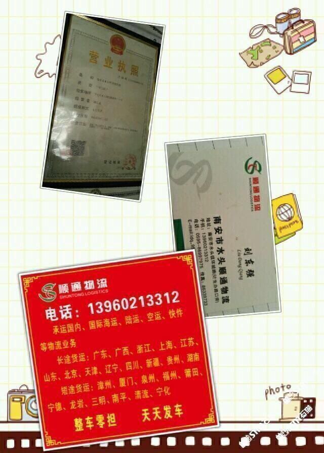 順通物流 聯(lián)系人:劉先生    139****3312 查看 139****3312 查看 主營(yíng)范圍: 物流、 企業(yè)地址:福建泉州南安市世紀(jì)大道