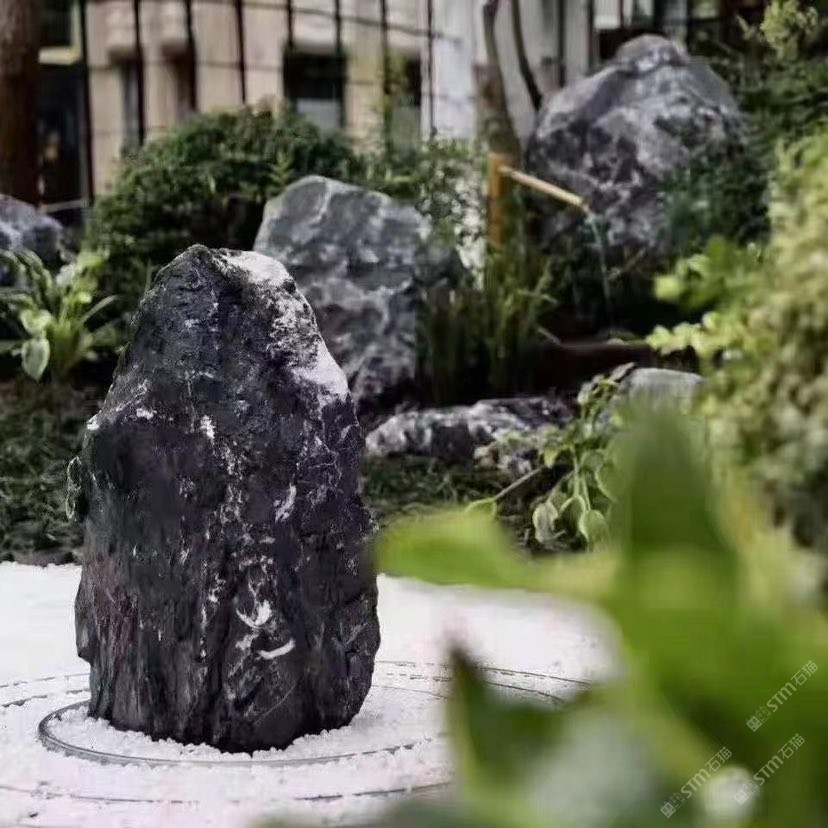 黑山石造景庭院假山流水效果
