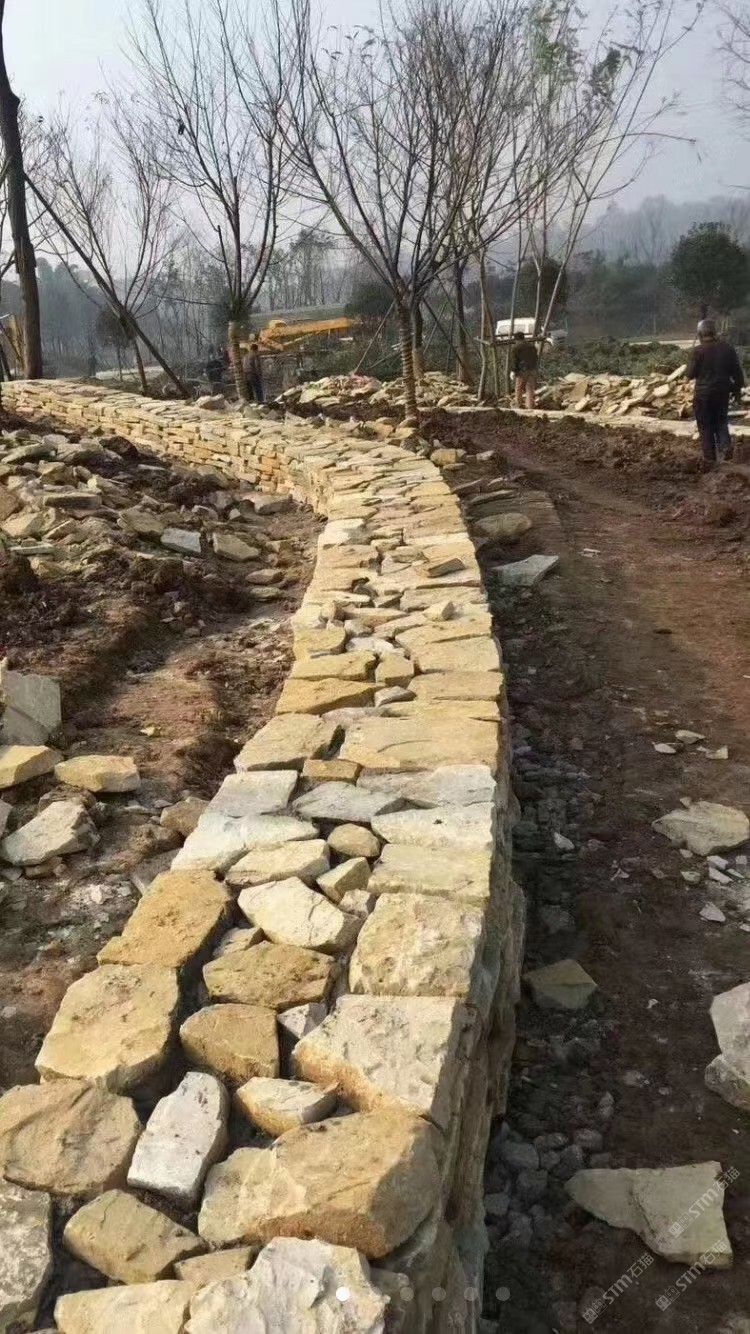 黃砂砂巖壘墻塊石 花園壘墻塊石 黃砂巖自然面碎拼墻石 直徑200-500mm大量供應(yīng)