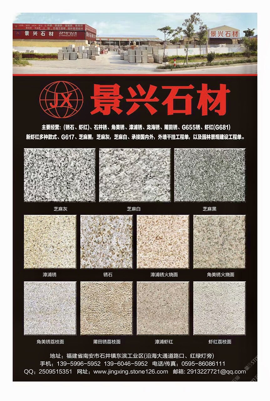 南安市石井景興石材廠 聯(lián)系人:洪    139****5952 查看 139****5952 查看 主營(yíng)范圍: 大板批發(fā)、花崗巖加工、 企業(yè)地址:福建泉州石井鎮(zhèn)東濱工業(yè)區(qū)(沿海大通道路口紅綠燈旁)