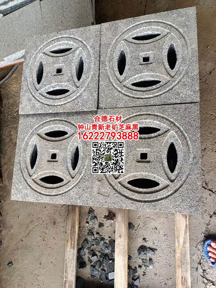 商圈 > 花崗巖 > 廣西鐘山青花崗巖水溝蓋板新芝麻黑654石材雨水篦子