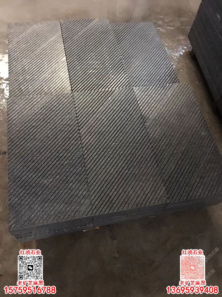 老礦芝麻黑654石材廠家拉絲面防滑面地鋪石溝槽面