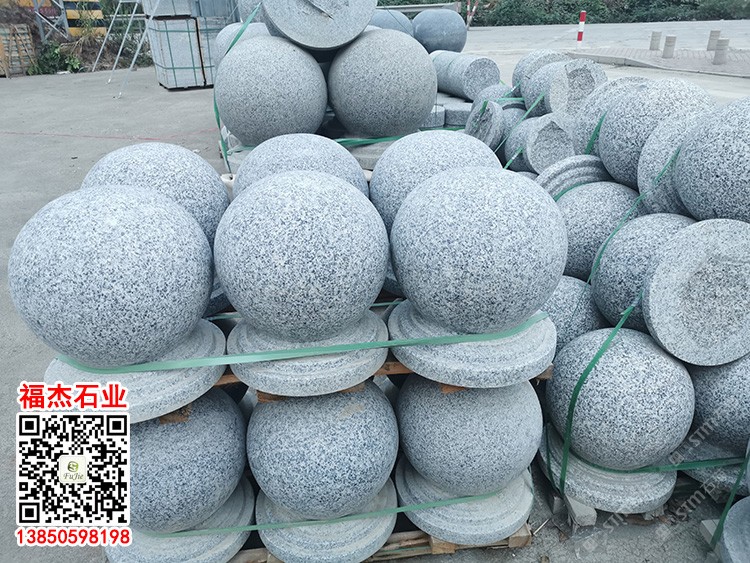 G655芝麻灰花崗巖路障石灰色石材擋車石球圓球石墩