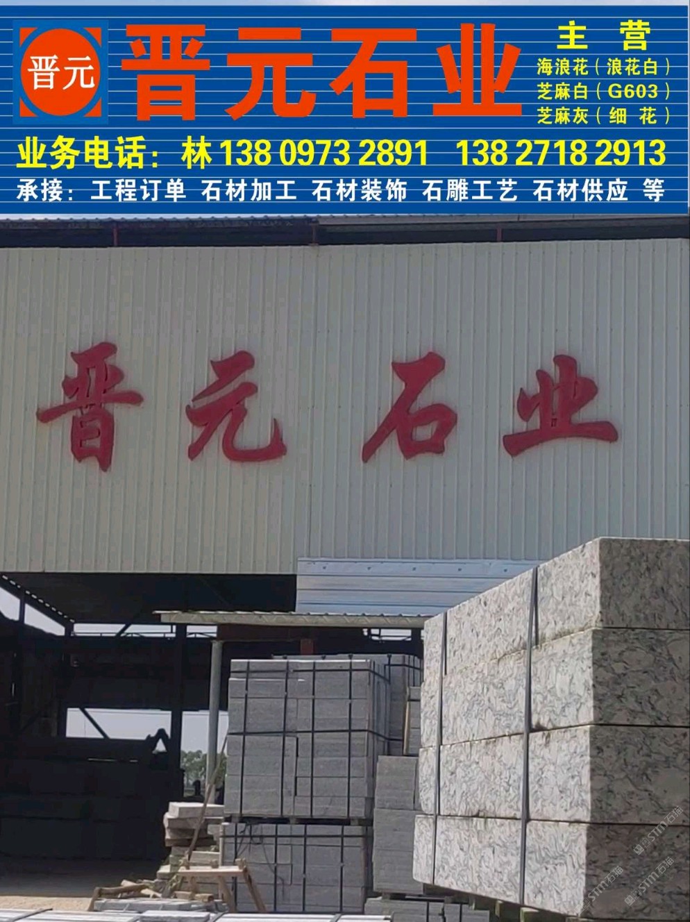 廉江市晉元石業(yè)板材廠 聯(lián)系人:林經(jīng)理    138****2891 查看 138****2891 查看 主營范圍: 大板批發(fā)、花崗巖加工、異型加工、石材雕刻、石材工藝品、 企業(yè)地址:廣東湛江廉江市長山鎮(zhèn)勿曲園村