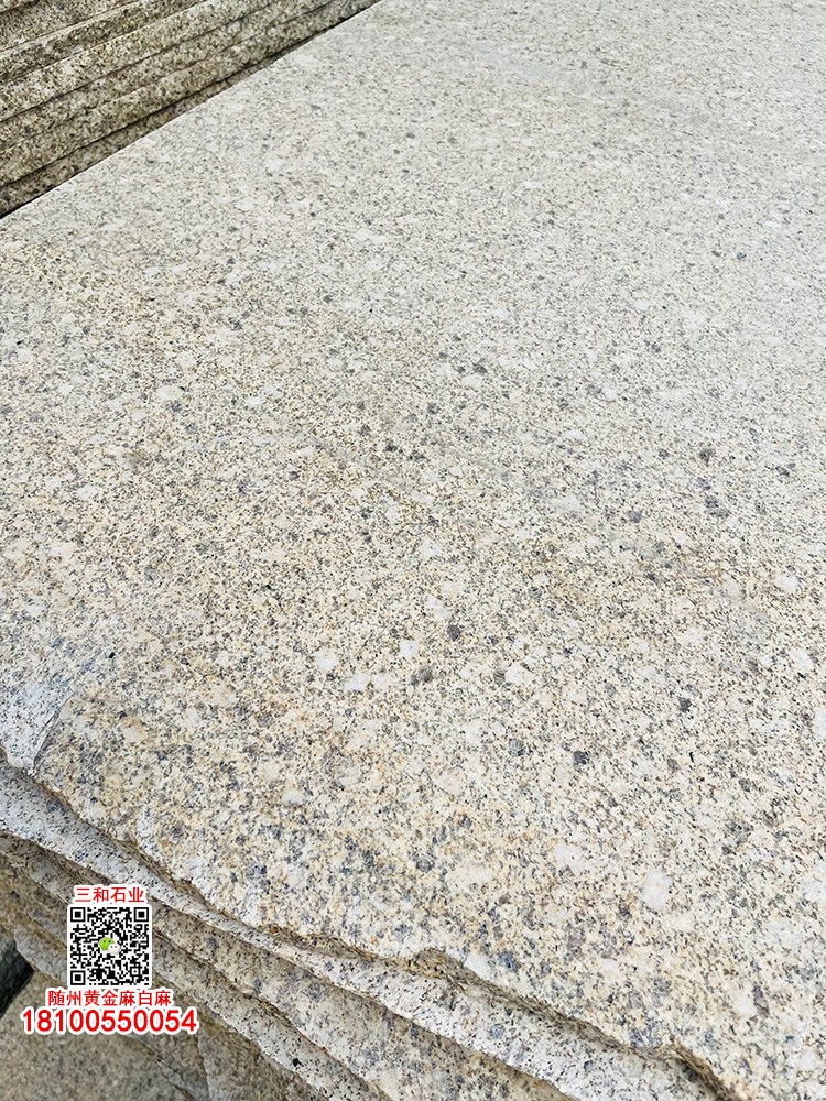 隨州黃金麻石材-隨州白麻花崗巖-光面黃金麻-燒面黃金麻-荔枝面黃金麻-光面白麻-燒面白麻-荔枝面白麻 隨縣三和石業(yè) 劉經(jīng)理 18100550054(微信同號(hào))專業(yè)隨州黃金麻/白麻供應(yīng)商廠家,工廠位于隨州石材工業(yè)園;專注于別墅幕墻干掛工程及園林地鋪石材加工,實(shí)力工廠,廠礦一體;主營(yíng):隨州黃金麻、隨州白麻、湖北黃金麻、湖北白麻、黃銹石、白銹石、黃色麻石、白色麻石、光面黃金麻、燒面黃金麻、荔枝面黃金麻等花崗巖;同等品質(zhì)基地批發(fā)價(jià)格更低,隨縣三和石業(yè)有限公司歡迎你來(lái)電溝通洽談業(yè)務(wù)!