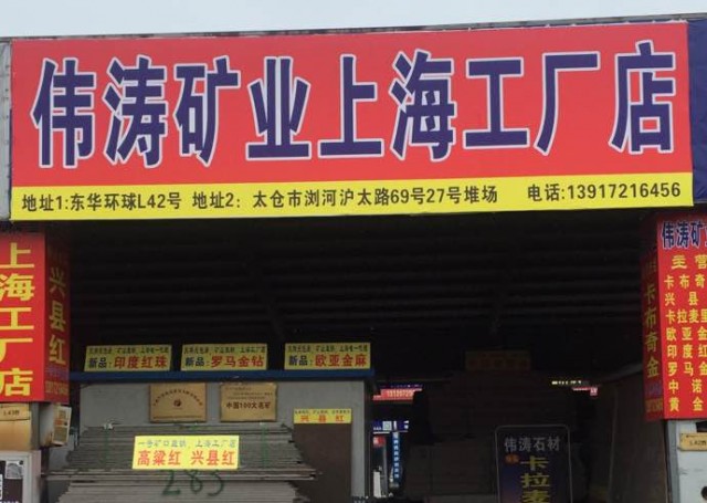 偉濤石材 聯(lián)系人:楊先生    139****6456 查看 021-****1188 查看 主營范圍: 荒料、花崗巖加工、礦山、石材交易市場、大板批發(fā)、 企業(yè)地址:江蘇蘇州太倉市S338(滬太新路)蘇州富田工業(yè)區(qū)瀏太石材市場27號堆場
