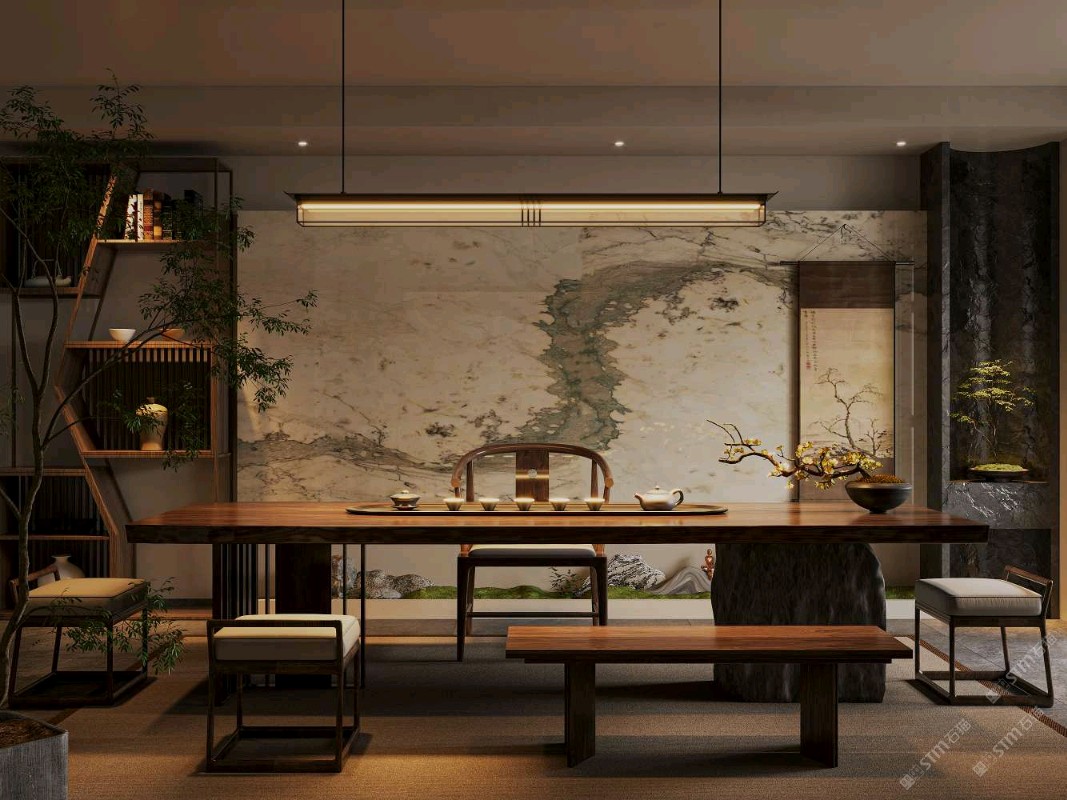 茶室背景效果圖