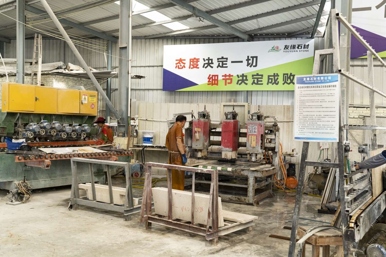 發(fā)布信息: 友緣石材成立于1998年至今。是一家集石材礦山開(kāi)采、加工批發(fā)、工程設(shè)計(jì)、安裝施工、售后服務(wù)為一體的石材企業(yè),承接各類石材裝飾工程及加工各種異型工藝石材。 友緣石材精品加工中心、精品倉(cāng)儲(chǔ)中心位于江蘇省南通市洋口港石材產(chǎn)業(yè)園區(qū),占地面積約28000平方米,生產(chǎn)中心集石材荒料加工,精品大板拋光,工程異形石材加工等一體化生產(chǎn)功能,具有國(guó)內(nèi)外先進(jìn)加工設(shè)備,如鉆石切割機(jī)、單邊鋸切割機(jī)、繩鋸切割機(jī)、全自動(dòng)板材拋光機(jī)、真空烘干流水線設(shè)備、紅外線切割機(jī)、全自動(dòng)化線條機(jī)、磨邊機(jī)、水刀切割機(jī)、仿形機(jī)等等,具備先進(jìn)的加工能力和豐富的施工經(jīng)驗(yàn)。