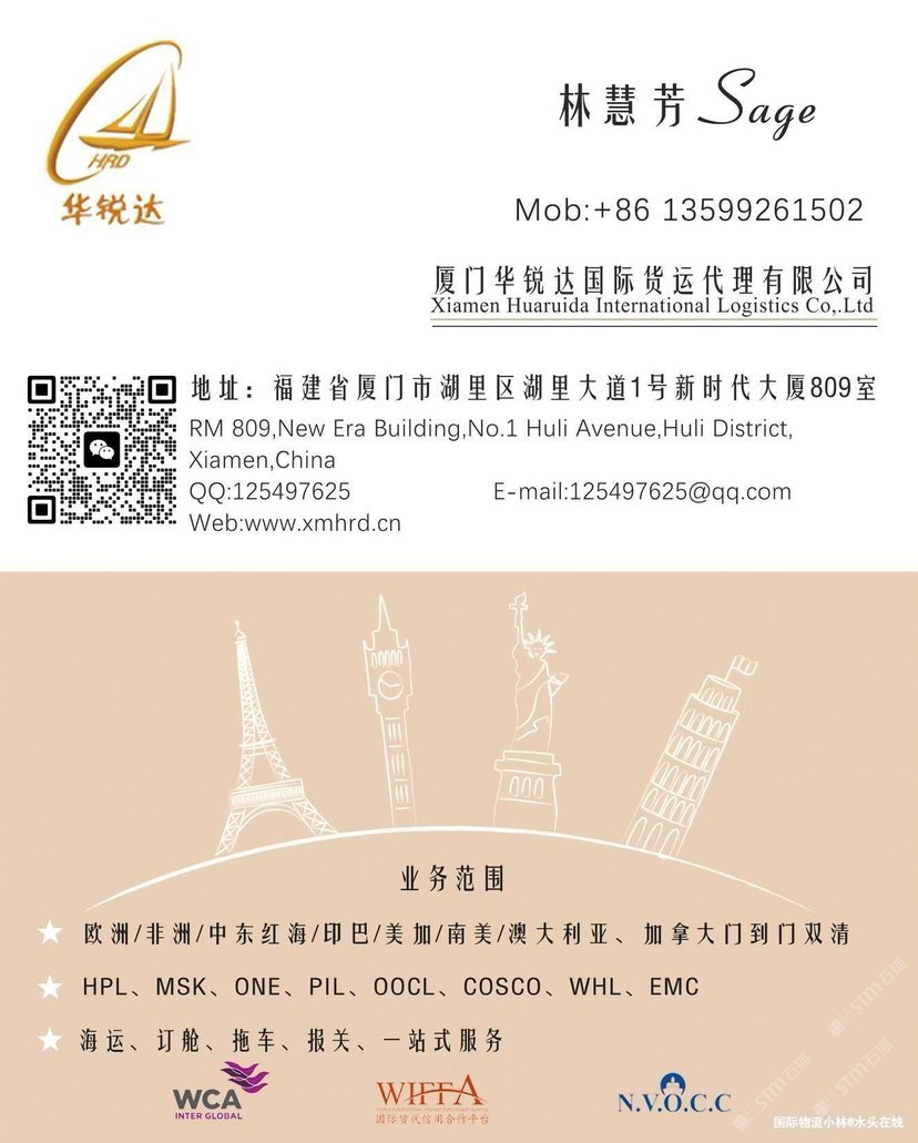 發(fā)布信息: 廈門華銳達(dá)國際物流專業(yè)石材國際運(yùn)輸服務(wù),全面覆蓋歐洲、非洲、中東、印巴(印度/巴基斯坦)、南美、澳大利亞及中亞五國等全球主要市場(chǎng),確保您的石材安全、高效抵達(dá)目的地 歡迎詢價(jià)13599261502