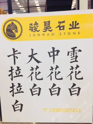發(fā)布信息: 【駿昊石業(yè)】主營(yíng)????意大利:雪花白,細(xì)花白,中花白,卡拉拉白,大花白,大量1.5跟1.8大板~荒料。康利大板市場(chǎng)1號(hào)門直走i2區(qū),15980307421