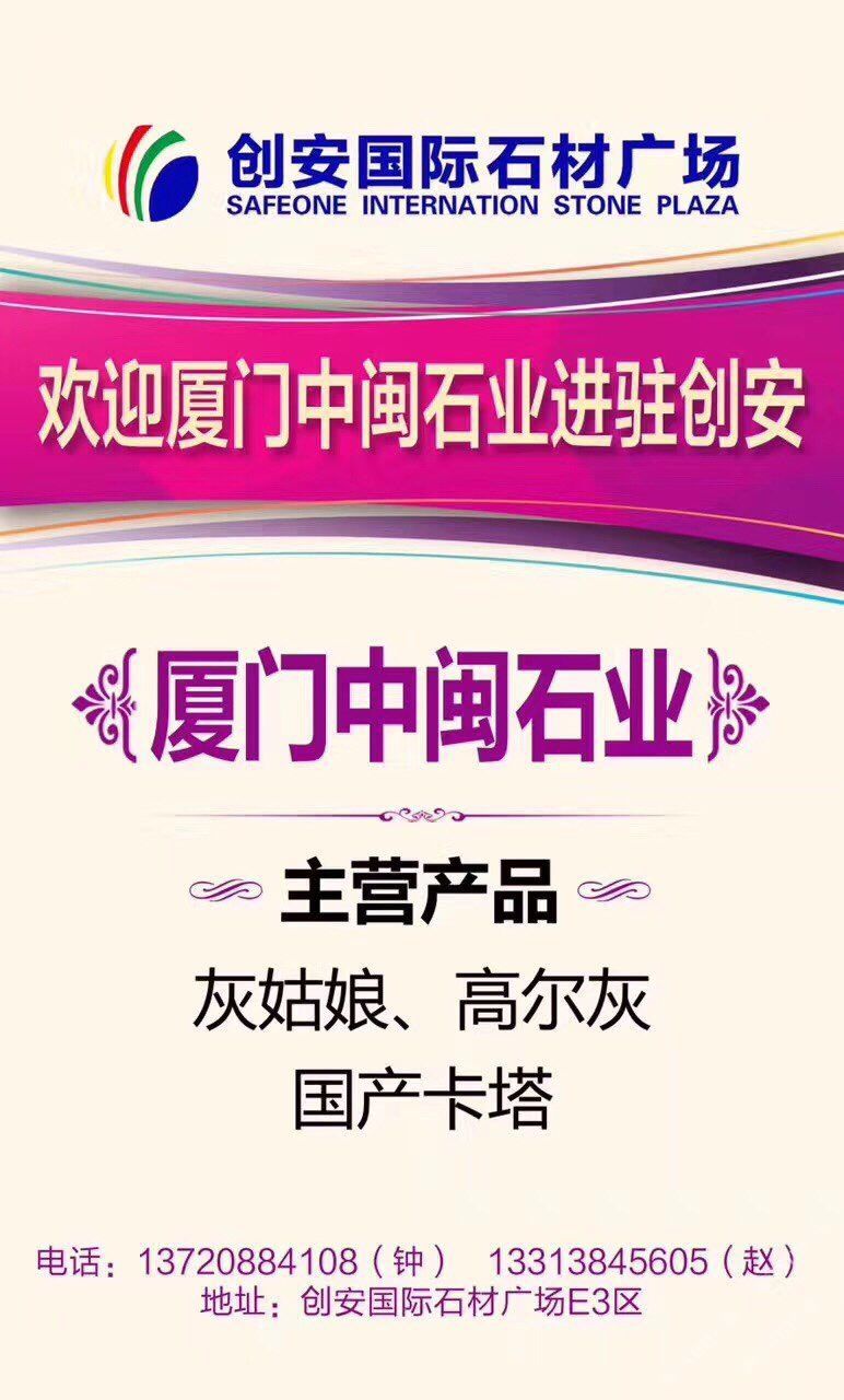 廈門中閩實業(yè)有限公司 聯(lián)系人:趙先生    133****5605 查看 手機號碼:無 主營范圍: 大板批發(fā)、大理石加工、荒料、礦山、石材外貿(mào)、 企業(yè)地址:福建泉州南安市石井鎮(zhèn)虎井村49號