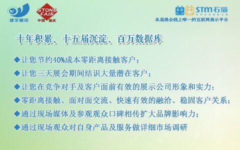 發(fā)布信息: 主辦:重慶市工商聯(lián)(總商會(huì))建材商會(huì)、重慶建宇展覽有限公司 承辦:重慶建宇展覽有限公司 時(shí)間:2018年5月10-12日 地點(diǎn):重慶國(guó)際會(huì)議展覽中心 【往屆回顧】 上屆展會(huì)有來(lái)自國(guó)內(nèi)外近600余家知名企業(yè)和品牌參展,展示面積25000平方米,共接待了包括開(kāi)發(fā)商、建筑商、承包商、裝飾設(shè)計(jì)、代理商、經(jīng)銷(xiāo)商等專(zhuān)業(yè)人士近3萬(wàn)人次,被業(yè)界譽(yù)為中國(guó)西部地區(qū)專(zhuān)業(yè)性強(qiáng),參展效果的行業(yè)盛會(huì)之一!同時(shí)也得到了重慶市政府部門(mén)及行業(yè)主管部門(mén)的大力支持和指導(dǎo)。 【參展范圍】 石材類(lèi):大理石/花崗石/砂巖荒料、石灰石、板巖等 板材類(lèi):天然石材/大理石/花崗石板材、復(fù)合板材、環(huán)境石材 人造石類(lèi):人造石英石、人造文化石、人造石板材 石雕制品類(lèi):石雕、石刻制品、石碑制品、園林風(fēng)景石、假山石等 環(huán)境裝飾類(lèi):卵石、仿古石、景觀石、磨菇石等 石材機(jī)械及加工設(shè)備:金剛石串珠鋸、研磨拋光設(shè)備、水射流切割機(jī)等 養(yǎng)護(hù)材料及設(shè)備:石材養(yǎng)護(hù)用品及設(shè)備、各類(lèi)石材清洗、研磨劑、石材拋光劑等 【為什么選擇-建宇·建博會(huì)—十年積累、十五屆沉淀、百萬(wàn)數(shù)據(jù)庫(kù)】 ?節(jié)約40%成本零距離接觸客戶(hù) ?三天展會(huì)期間結(jié)識(shí)大量潛在客戶(hù) ?在對(duì)手及客戶(hù)面前展示公司形象和實(shí)力 ?快速有效的融洽、穩(wěn)固客戶(hù)關(guān)系 ?通過(guò)現(xiàn)場(chǎng)媒體及觀眾口碑相傳擴(kuò)大品牌影響力 ?通過(guò)現(xiàn)場(chǎng)觀眾對(duì)產(chǎn)品及服務(wù)做詳細(xì)市場(chǎng)調(diào)研 【中國(guó)?重慶建博會(huì)組委會(huì)】 單 ?位: 重慶建宇展覽有限公司 電 ?話: 023-86376000/62925058 傳 ?真: 023-86376218 e-mail: ?jianyuzl@163.com 地 ?址: 重慶市南岸區(qū)南坪西路3號(hào)商業(yè)大樓29-4