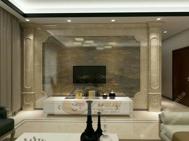商圈 > 成套背景 > 水刀拼花,天然石人造石電視背景墻,復(fù)式別墅背景墻