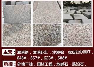 廈門高厝樓進出口有限公司主營產(chǎn)品:漳浦銹,漳浦蝦紅,漳浦紅G648,G684(火燒面),新G684,中國黑,蒙古黑,沙漠棕,天鵝白,G623,G688,虎皮白,虎皮紅,羅源紅G664企業(yè)地址:福建南安豐隆加油站往水頭方向200米處
