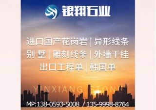 銀翔石業(yè)主營產(chǎn)品:英國棕,木瑪麗(黃底),七彩啡珠,紅鉆,綠星1,銹石,漳浦銹,新永定紅(光面),白玫瑰(花崗巖),白世貿(mào),芭蕉黃1,淺紫點,漳浦蝦紅(老礦仁壽),安哥拉黑,木瑪麗,中磊紅,紫藍花(光面),藍眼睛,金茂蘭企業(yè)地址:福建泉州南安市石井鎮(zhèn)三鄉(xiāng)村章文銀翔石材