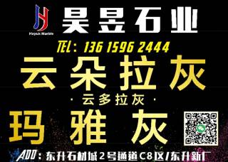 永創(chuàng)美林石業(yè)有限公司主營產(chǎn)品:云多拉灰17,云多拉灰26,愛馬仕灰,瑪雅灰企業(yè)地址:廣東云浮云城區(qū)G324河口鎮(zhèn)馬崗村永創(chuàng)美林石業(yè)
